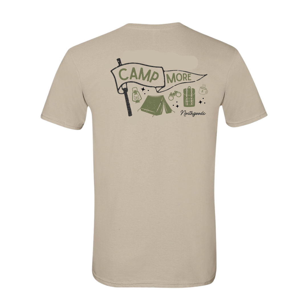 Everyone needs to camp a little more....do it in style and comfort this summer with our new Camp More tee. Featuring our Camp More banner graphic across the back and our classic trees icon logo on the front left chest.
